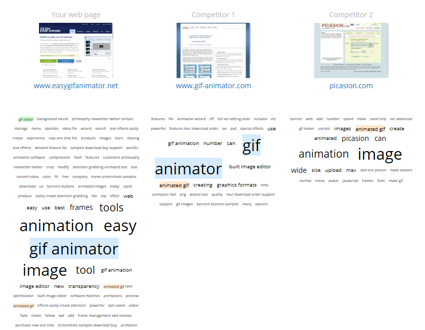 Betrachten Sie über eine grafische Darstellung die Suchwortdichte auf Ihrer Seite im Vergleich zu Ihren Konkurrenten.