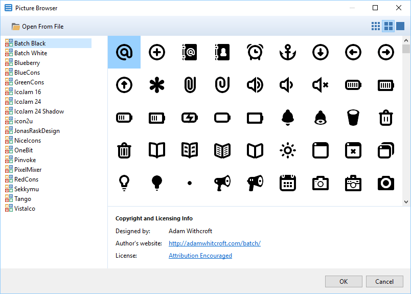 È possibile aggiungere facilmente immagini ai propri pulsanti e menu. Sono supportati diversi formati icona. Sono incluse centinaia di icone gratuite.